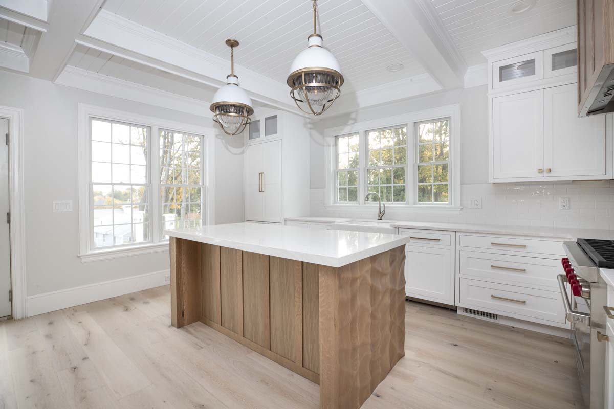 The Kitchen is gorgeous with views, a large island with white quartzite counter tops & brass pendants finishes, WOLF gas stove & Thermador appliances. Kitchen opens to the family room with a fireplace, sophisticated coffered ceilings which are over 9 feet as well as the dining area. The mudroom catches it all with cubbies, window seat and half bath. The home office has a closet & completes the 1st floor. The Primary bedroom is to die for with a windowed wall for max views, a luxurious full bath & walk-in closet, but it’s the 3rd floor that is the WOW factor, use as a 4th bedroom bc there is a full bath. The LL is finished with built-ins & office & excellent storage.